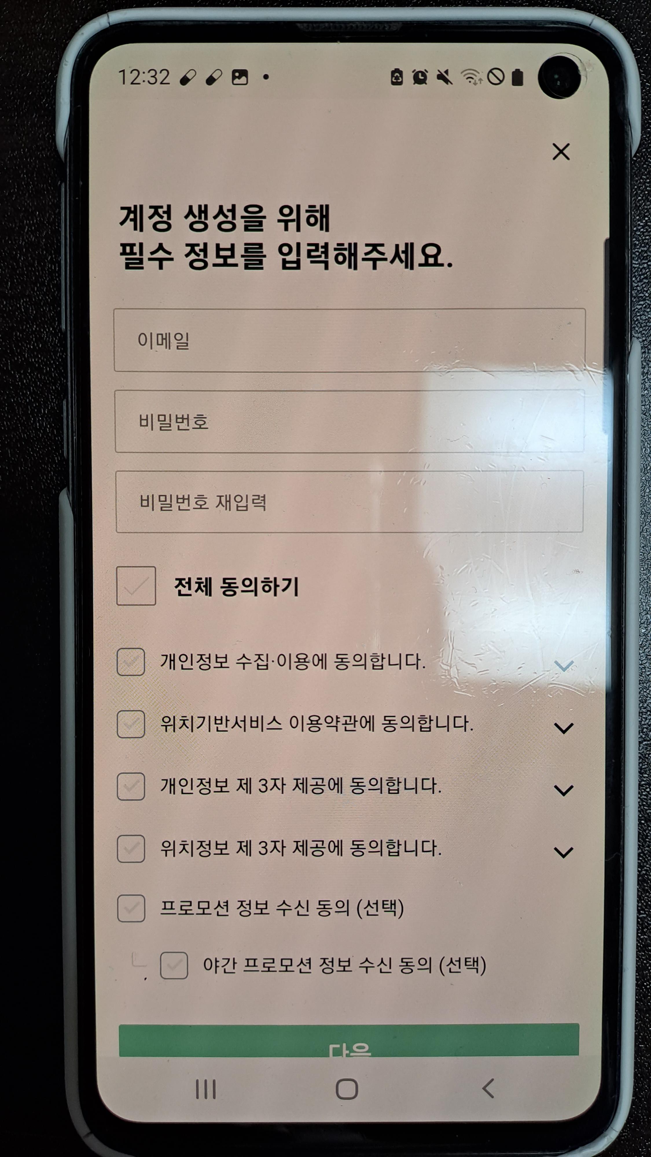 2. 이메일/비밀번호 등 정보를 입력하고 전체 동의하기 클릭합니다.
