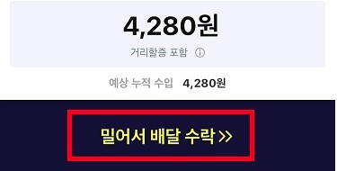 3. 배정이 맘에 들 경우 아래의 바를 밀어서 배달수락을 해 주시면 됩니다.